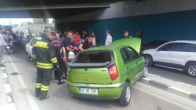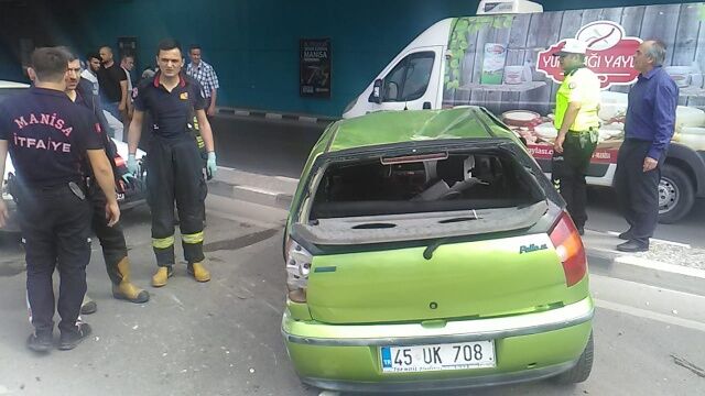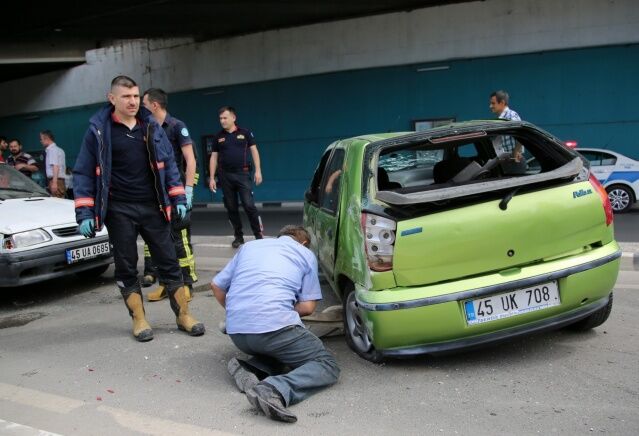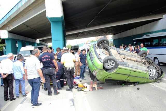 Kaza, Şehzadeler ilçesi Devlet Bahçeli Köprülü Kavşağı altında meydana geldi. Edinilen bilgiye göre Bahar Y. yönetimindeki 45 UK 708 plakalı otomobil, Devlet Bahçeli Köprülü Kavşağı'na girdiği sırada bir anda kontrolden çıkarak devrildi. Bir süre sürüklenen otomobil yoldaki Adnan A. idaresinde bulunan 45 UA 0685 plakalı otomobile çarparak durabildi. Kaza sonrası devrilen otomobil hurdaya dönerken, araçta ulunan sürücü Bahar Y. ile yanında yolcu konumundaki Zeynep Ç. yaralandı. Çevredeki diğer sürücülerin ihbarı üzerine bölgeye çok sayıda ambulans ve itfaiye ekibi sevk edildi. Otomobilde sıkışan sürücü Bahar Y. itfaiye ekiplerinin çalışması sonrası araçtan çıkarılarak, ambulansla hastaneye kaldırıldı.