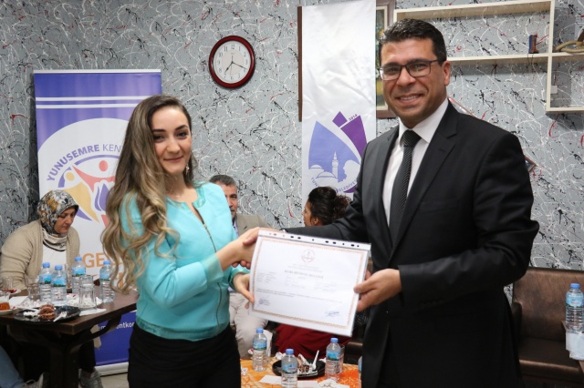 Yunusemre Kent Konseyi ve Yunusemre Belediyesi’nin iş birliğiyle Ocak ayında başlatılan “Konuşan Eller İşaret Dili Kursu” gerçekleştirilen sertifika töreniyle sona erdi. Yaklaşık iki buçuk ay süren kurs sonunda kursiyerler sertifikalarını Yunusemre Belediye Başkan Yardımcısı İdris Avşar’ın elinden aldı.
