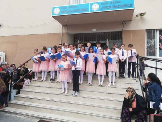 Saruhanlı Halitpaşa Gazi Fatih İlkokulu ve Şehit Nezir Pirnarcı Ortaokulu’nda bu yıl da 23 Nisan Ulusal Egemenlik ve Çocuk BAYRAMI çeşitli etkinliklerle kutlandı. Yoğun katılımın sağlandığı etkinlikte tüm sınıfların özenle hazırlamış olduğu gösteriler büyük beğeni topladı. Tören sonunda hayırsever bir vatandaşımızın katkısı ile hazırlanan beş yüz elma şekeri tüm çocuklara dağıtıldı. Bayramda doyasıya eğlenen çocukların elma şekeri alarak bayramdan ayrılması herkesi memnun etti.