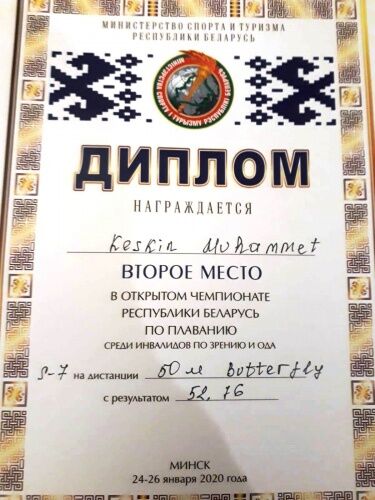 24-26 Tarihleri arasında Belarus’un başkenti Minsk'te gerçekleştirilen Uluslararası Paralimpik Yüzme Turnuvasına katılan Engelli Yüzme Milli Takım sporcularımız attıkları kulaçlarla 18 Altın, 23 Gümüş, 19 Bronz madalya elde ettiler. Manisa Su Sporları Kulübünün profesyonel sporcusu olan Muhammet Keskin 3 Altın 1 Gümüş madalya elde etti. Kesin’i hava limanında babası Ekrem Keskin, Manisa Bedensel Engelliler Spor İl Temsilcisi Ahmet Ünsal ve Antrenörü Nurettin Karanarlık tarafından Türk bayrağı karşıladı.