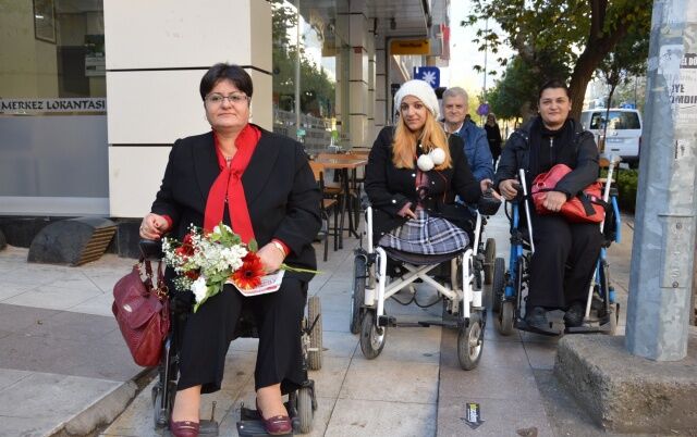 Manisa’daki 10 Kasım törenlerinin ardından tekerlekli sandalyeleriyle yola çıkan bedensel engelliler, engelli rampalarının önlerinin araçlar tarafından kapatılması nedeniyle kaldırımdan inemedi. Duruma tepki gösteren Manisa Bedensel Engelliler Derneği Başkanı Yasemin Yıldız, yetkililerin kendilerine her türlü kolaylığı sağladığını ancak vatandaşların aynı hassasiyeti göstermemesinden şikayet etti.