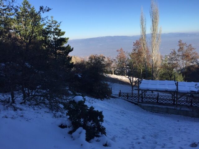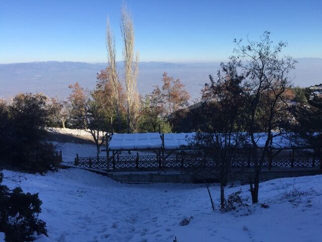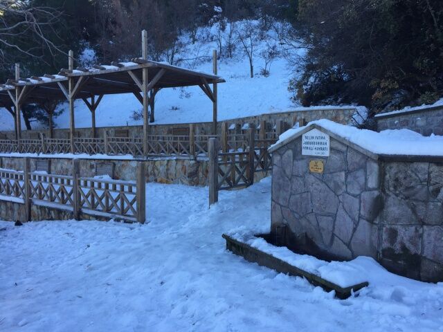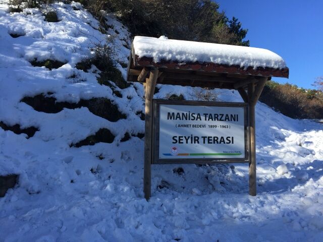 Manisa'da 1517 rakımlı Spil Dağı'nın yüksek kesimlerinde etkili olan karşı yağışı sonrası ortaya bembeyaz bir manzara çıktı.