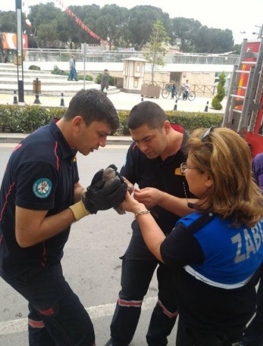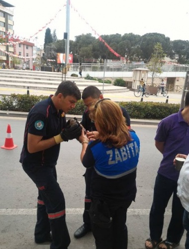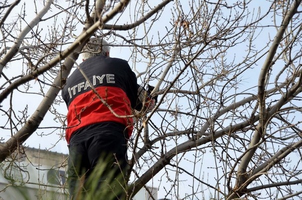 Manisa’nın Alaşehir ilçesinde ayağına dolanan bir ip nedeniyle ağaçta asılı kalan bir güvercin zabıta ve itfaiye ekiplerinin çabasıyla kurtarıldı.
