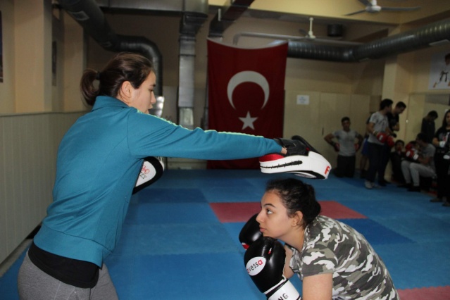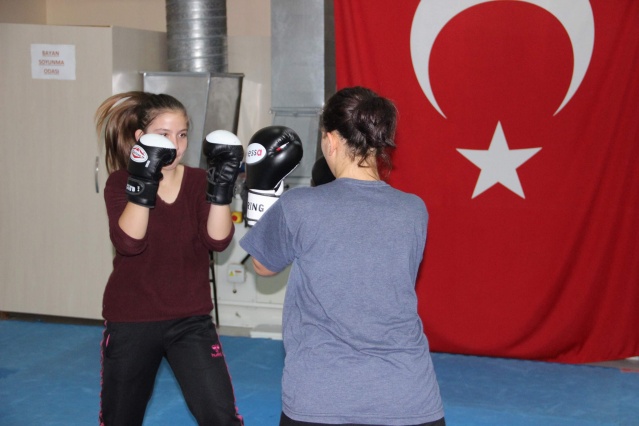 Hafta sonu gerçekleştirilen kurslara kız öğrenciler de yoğun ilgi gösteriyor. Boks sporu sayesinde özgüvenlerini arttıran kız öğrenciler, aynı zamanda kendilerini savunmayı da öğreniyor.