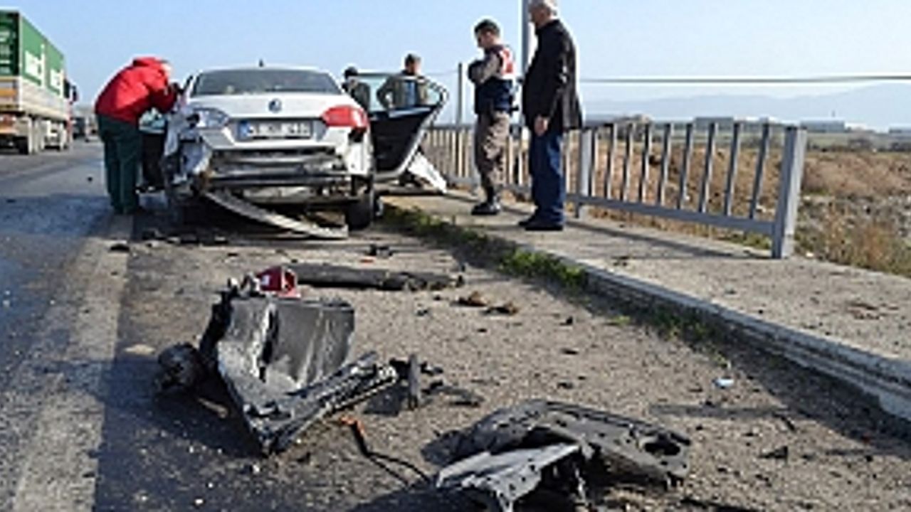 Korkuluklara Çarpan Araç Hurdaya Döndü