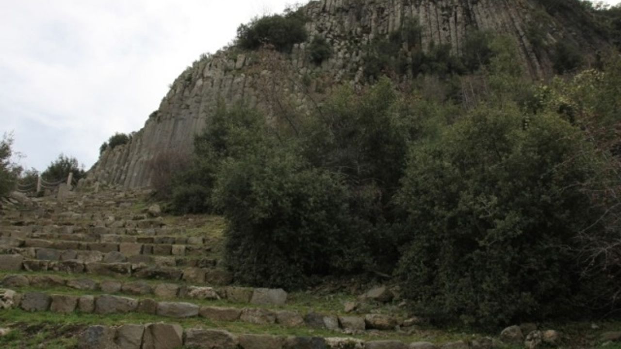Manisa'nın Kula ilçesinde yer alan Çakırca Bazalt Sütunlarında 15 ila 20 bin yıl önce yanardağdan çıkan lavların izi görülebiliyor.