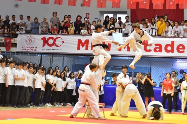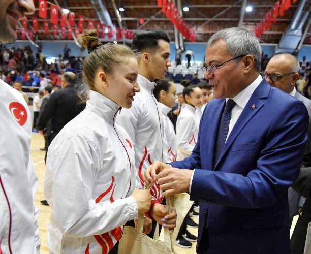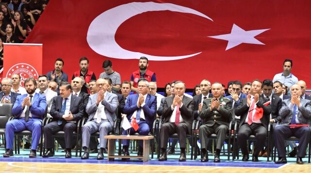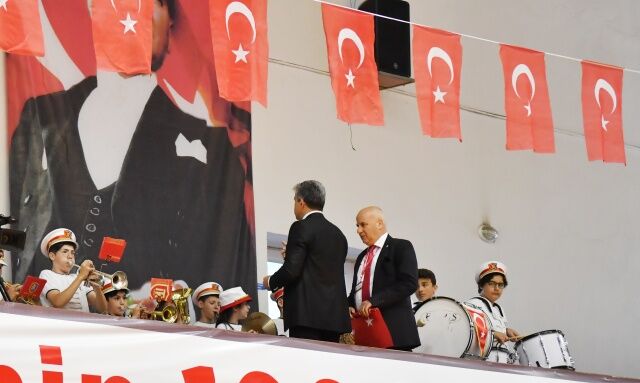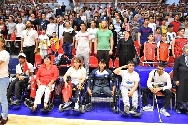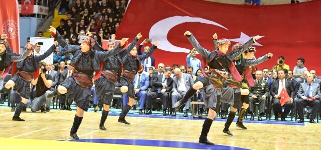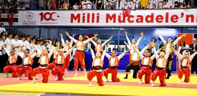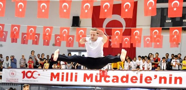 Manisa'da Atatürk Spor Salonunda düzenlenen 19 Mayıs Atatürk'ü anma, Gençlik ve Spor Bayramı kutlamalarında renkli görüntüler ortaya çıktı.