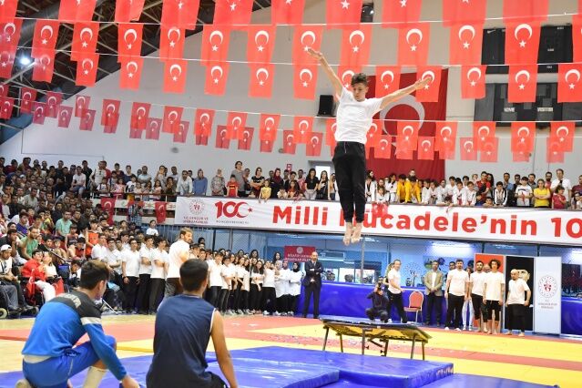 Türkiye Cumhuriyetinin kurucusu Gazi Mustafa Kemal Atatürk'ün kurtuluş mücadelesini başlatmak için 19 Mayıs 1919 tarihinde Samsun'a çıkışının 100. yılı tüm yurtta olduğu gibi Manisa'da da coşkuyla kutlandı. 19 Mayıs Atatürk'ü anma, Gençlik ve Spor Bayramı kutlamaları ilk olarak Cumhuriyet Meydanındaki Milli Egemenlik Anıtına Gençlik ve Spor İl Müdürlüğü tarafından çelenk sunulmasıyla başladı. Meydandaki öğrenciler ve sporcular ellerinde 100. yıl anısına 100 metrelik Türk bayrağı ile bandonun çaldığı marşlar eşliğinde kutlama programının yapılacağı Atatürk Spor Salonuna yürüdü.