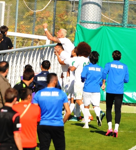 55. dakikada Manisa temsilcisi öne geçti. Mehmet'in sağdan ortasında penaltı noktası üzerinde iyi yükselen Ali kafayla vurdu: 1-0.