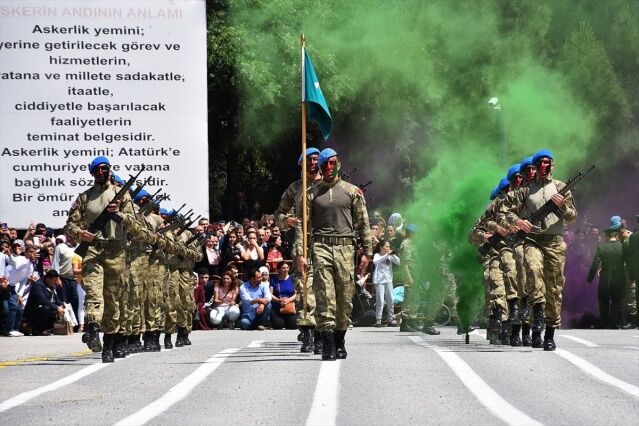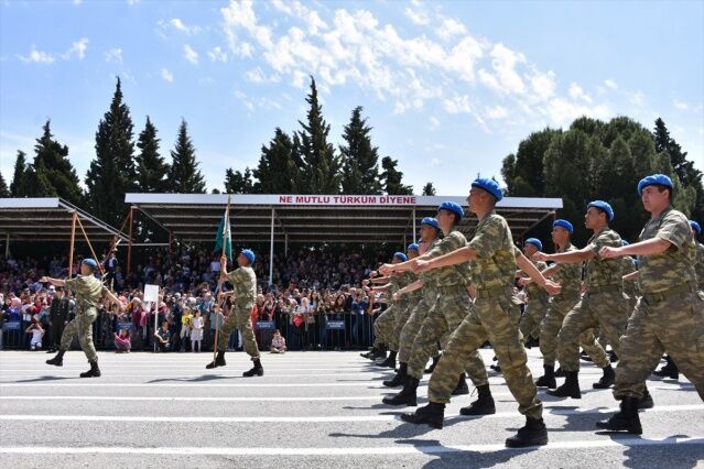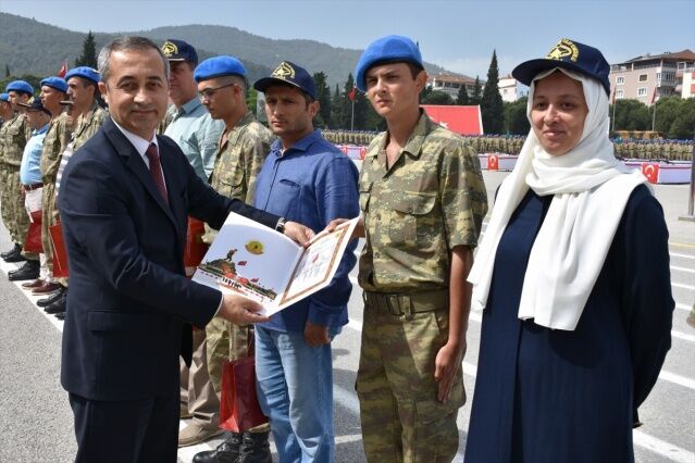 Manisa Vali Yardımcıları Ahmet Yılmaz, Abdullah Etil, Manisa Celal Bayar Üniversitesi Rektör Yardımcısı Prof.Dr.Birol Kovancılar ile asker ailelerinin izlediği törende eğitimlerini tamamlayan 4 bin 943 asker, silah ve Türk bayrağı üzerine el basarak yemin etti.