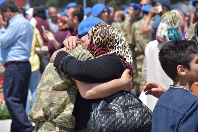 Daha sonra aileler, çocuklarıyla bir araya gelerek özlem giderdi. Asker aileleri kavuşma sırasında sevinç gözyaşı döktü.