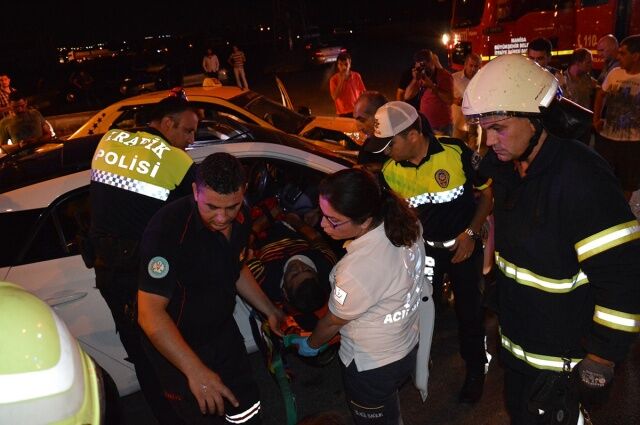 Manisa’da iki otomobilin çarpışması sonucu meydana gelen trafik kazasında 1’i çocuk 1’i hamile 4 kişi yaralandı.