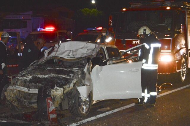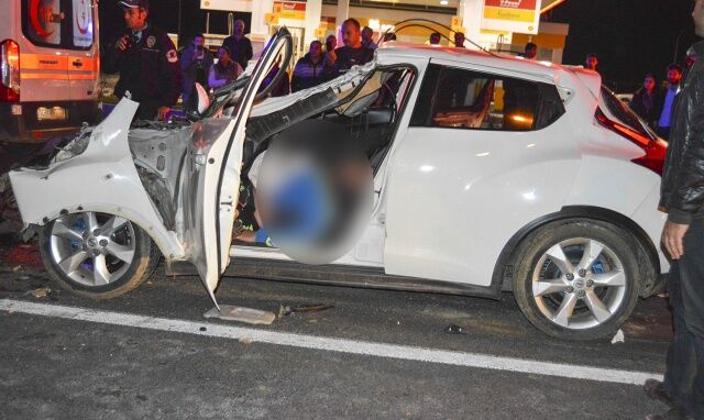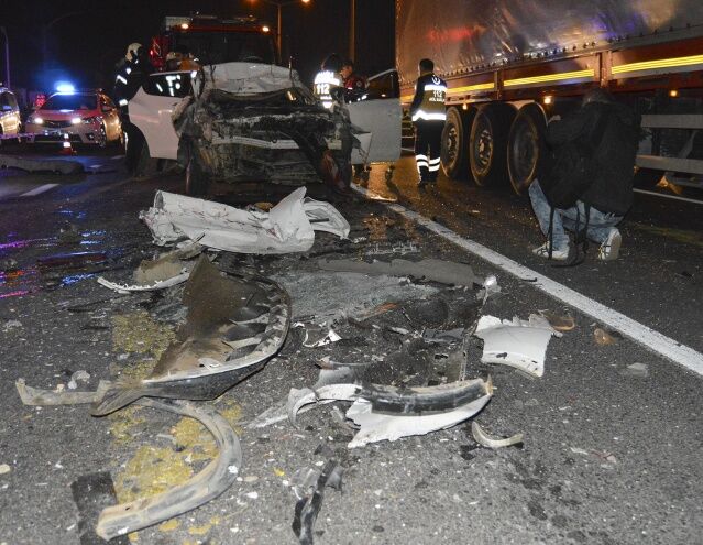 Manisa’nın Turgutlu ilçesinde meydana gelen trafik kazasında otomobil TIR’a arkadan çarptı. Kazada otomobil hurdaya dönerken, otomobil sürücüsü araç içerisine sıkıştı ve olay yerinde hayatını kaybetti.