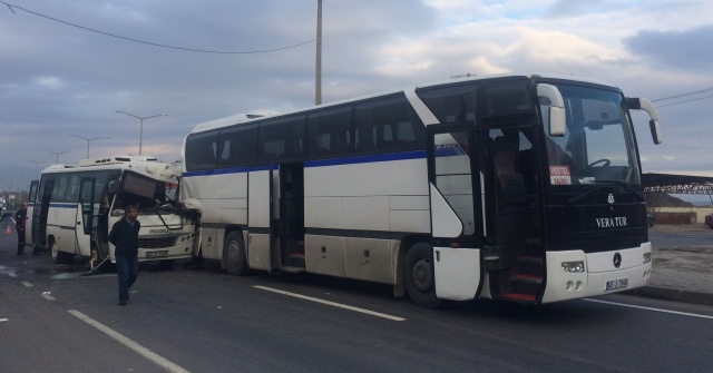 Manisa'nın Turgutlu ilçesinde iki işçi servisinin çarpışmasıyla meydana gelen trafik kazasında 14 kişi yaralandı.