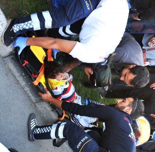 Manisa'da 5 yaşındaki A.E.G. annesinin elinden kurtulup yola fırlayınca Otomobilin çarpması sonucu ağır yaralandı. Oğlunun başında sinir krizi geçiren Fatma G. "Dayan oğlum şimdi ambulans geliyor" diyerek gözyaşı döktü.