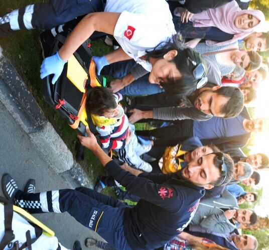Ambulans gelene kadar yoldan geçen bir emekli sağlık personeli yaralı çocuğa ilk müdahaleyi yaptı ve uyumamasını sağlamaya çalıştı.