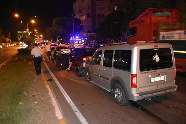 Manisa'nın Akhisar ilçesinde 3 aracın karıştığı zincirleme trafik kazasında 6 kişi yaralandı.