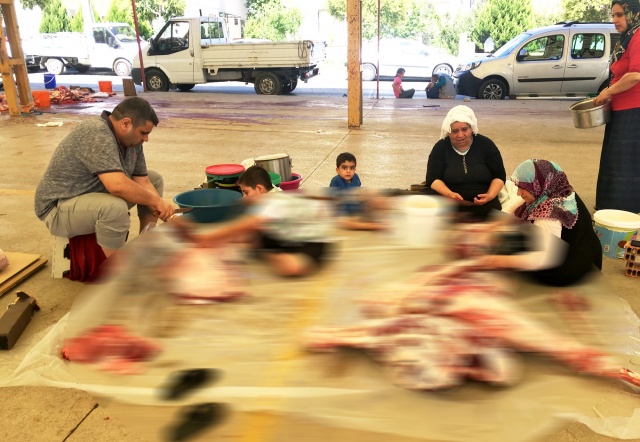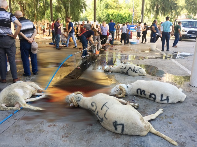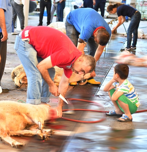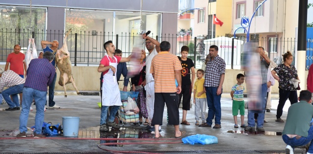 Tarım ve Orman Bakanlığı Manisa teşkilatındaki kesim komisyonu görevlileri ise kesim yerlerinde hastalıklı havyan olup olmadığı yönündeki denetimlerini üstlendi. Büyükler kurbanlıkların kesimine refakat ederken çocuklarda kesim yapılan kurbanlıklara meraklı gözlerle bakmaya devam etti. Bazı minikler ise annelerin kurban başlarını ayıklama sırasında oldukça meraklı idiler.