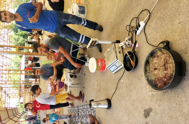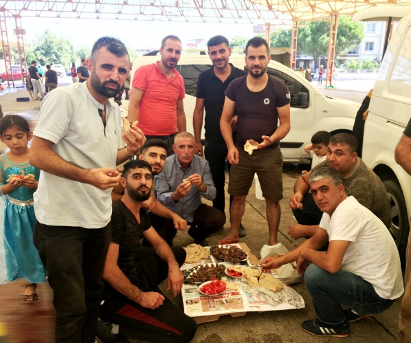 Laleli pazarındaki kesim yerinde ise vatandaşlar sabahın erken saatlerinde gelerek gerek büyükbaş gerekse küçük baş kurbanlıklarını dualar kesip yanlarında getirdikleri tüplü mangallarında kavurdu. Tadına bakan vatandaşlar kavurdukları kurban etlerinde kesim yapan komşularına da ikram etti.
