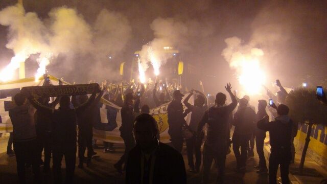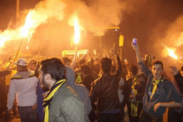 Fenerbahçe’nin otele gelmesiyle birlikte coşkusu artan taraftarlar meşalelerle ve marşlarla takımlarını karşıladı. Geniş güvenlik önlemlerinin alındığı otelin bahçesine ise taraftarlar alınmadı. Otelin girişinde karşılama yapılan Fenerbahçeli futbolculara çiçek verildi. Bazı Fenerbahçeli taraftarlar ise futbolcularla selfi yapmayı ihmal etmedi.