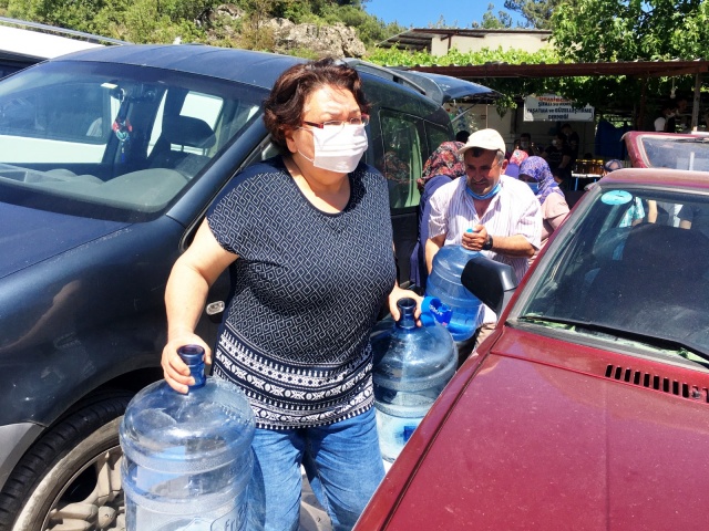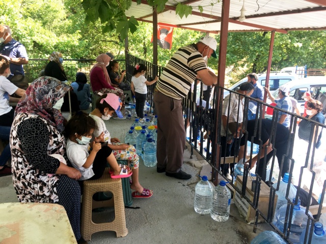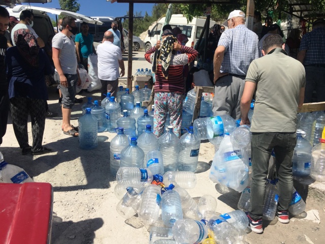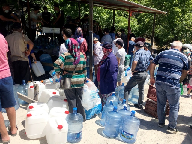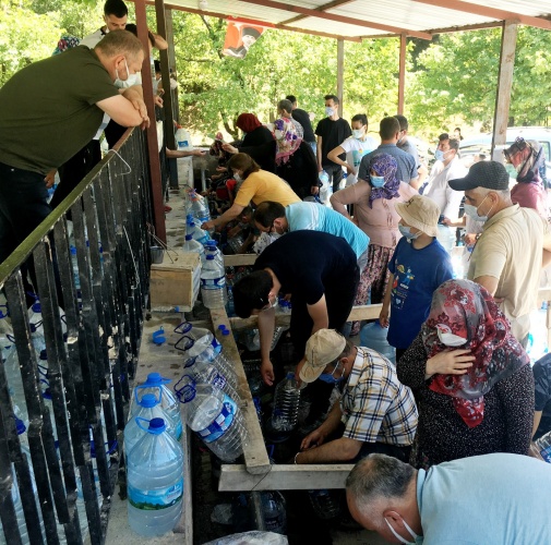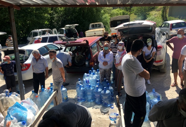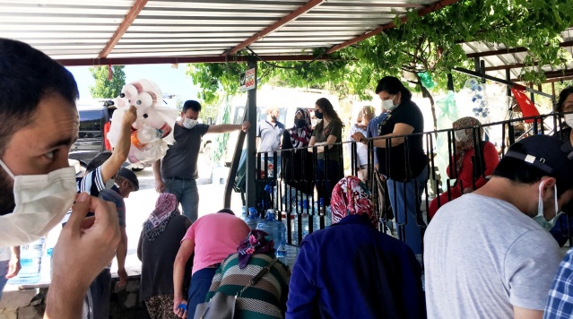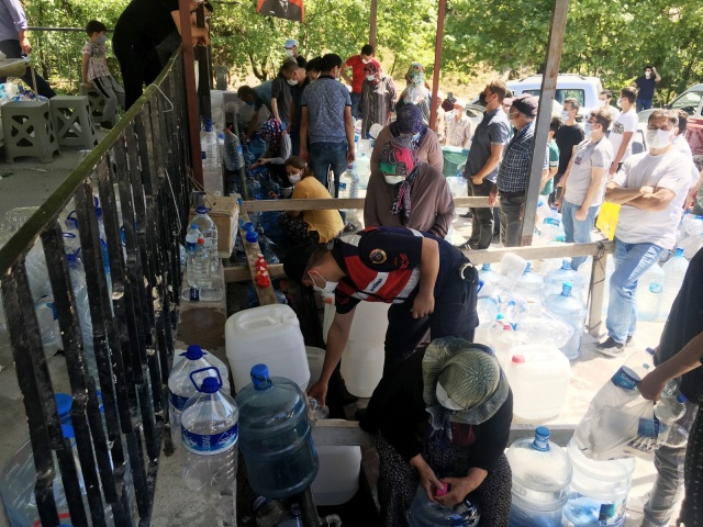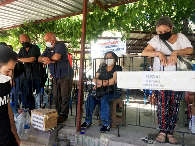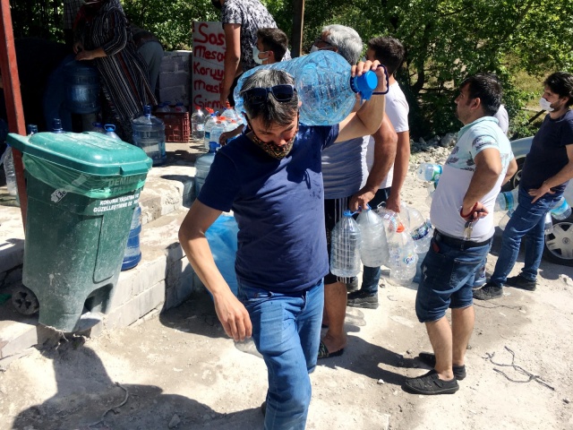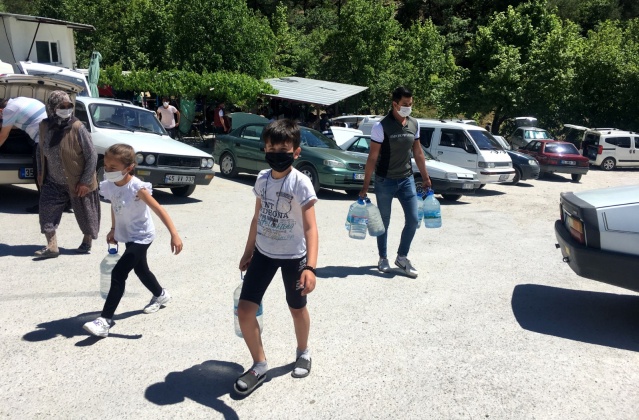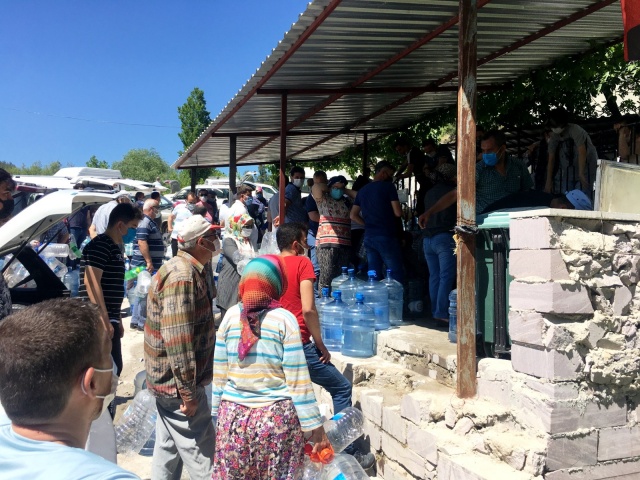 Sıcağa aldırış etmeden yanlarında getirdikleri 5-10 ve 25’er litrelik bidonlarla su kaynağı önünde uzun uzun kuyruklar oluşturan vatandaşlar şaşırttı. Gerek Jandarma'nın gerekse de suyun yönetiminden sorumlu Demirci Mahallesi Şifalı Su Derneği yetkililerinin sosyal mesafe ve maske uyarıları hiçe sayıldı.