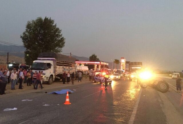 Kaza, saat 05.30 sıralarında Manisa’nın Alaşehir ilçesine bağlı Hacıaliler Mahallesi’nde meydana geldi. Edinilen bilgiye göre, Sarıgöl istikametinden gelen ve üzüm işçilerini taşıyan Süleyman Akın (62) idaresindeki 43 PL 137 plakalı minibüs, akaryakıt istasyonundan kontrolsüz çıktığı iddia edilen İsa Ünlükara yönetimindeki 45 TA 6331 plakalı traktöre yandan çarptı. Kazada traktörün römorkunda bulunan Süleyman Akdeniz (55) kaza yerinde hayatını kaybetti. Minibüs şoförü Süleyman Akın ve aracında bulunan 22 işçi ile traktördeki 3 kişi ise yaralandı.