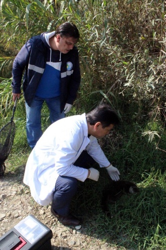 İhbar üzerine gelen Veteriner İşleri Müdürü Veteriner Hekim Birol Avcı, yerde hareketsiz vaziyette yatan hayvanın su samuru olduğunu ve hayvanın boynundan yaralı olduğunu söyledi.