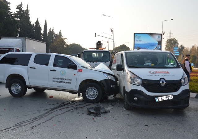 Bu sırada kazayı fark edemeyen Recep A. yönetimindeki 35 HC 8012 plakalı kamyonet ile Taner G. idaresindeki 45 M 3120 plakalı kapalı kasa kamyonet de kavşakta birbirleriyle çarpıştı. Zincirleme kazada 2 kişi yaralandı.