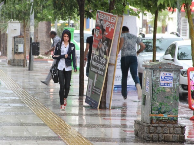 Manisa’da, akşam saatlerine doğru aniden bastıran dolu ve yağmura hazırlıksız yakalanan vatandaşlar, zor anlar yaşadı.