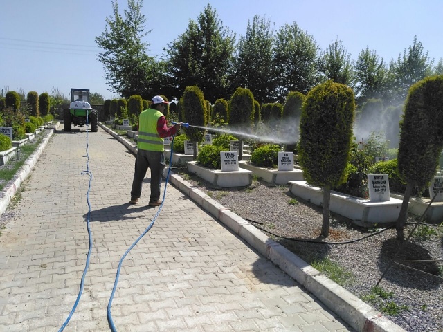 Manisa Büyükşehir Belediyesi, Turgutlu ilçesi merkezi ve mahallelerinde yer alan mezarlıklarda ilaçlama, temizlik, bakım ve çiçek ekim çalışması yaptı.