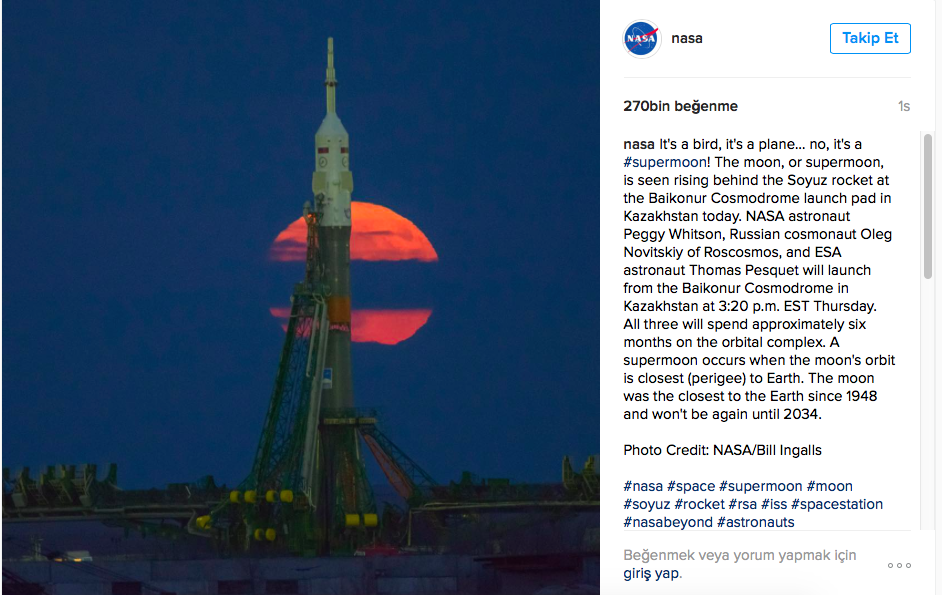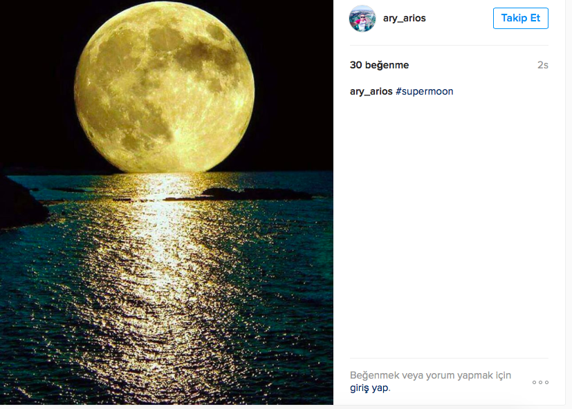 En son 1948 yılında meydana gelen “Süper Ay” bu gece itibari ile muhteşem bir görsel şölene sahne olacak. Ay, normalden yüzde 14 daha büyük görünecek. Bu fırsatı kaçırmayan diğer ülkelerden Instagram kullanıcıları ise #supermoon etiketi ile paylaşımlara başladı bile…
