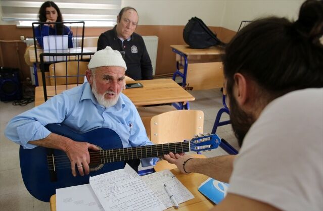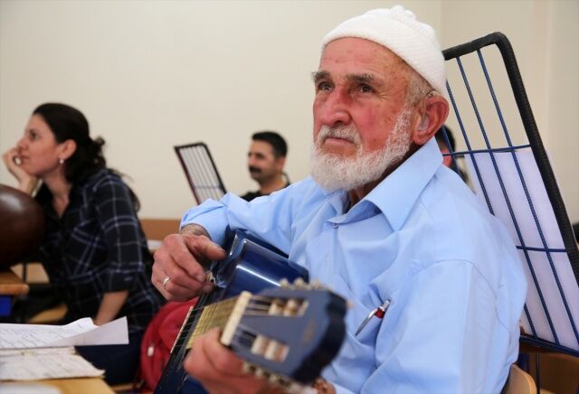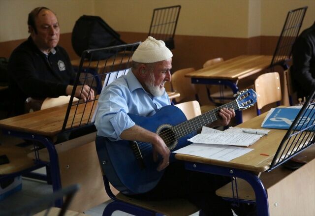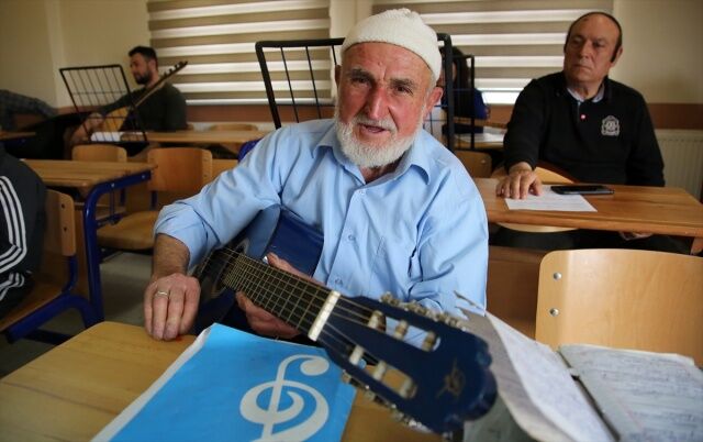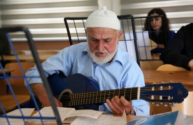 Manisa'nın Akhisar ilçesinde yaşayan 85 yaşındaki Halim Barca, çocukluğundan bu yana içinde sakladığı müzik tutkusunu, 80 yaşında öğrendiği gitarı ve besteleriyle yaşatıyor.