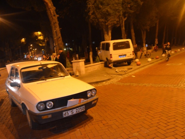 Kaza, saat 19.30 sıralarında Tabduk Emre Caddesi üzerinde meydana geldi. Edinilen bilgiye göre, Tabduk Emre Caddesi üzerinden Şehir merkezine gelmekte olan F. K’nin (20) kullandığı 45 K 0410 plakalı araç, sürücüsünün direksiyon hâkimiyetini kaybetmesinin ardından ilk olarak trafik işaret lambalarına çarptı. Çarpmanın etkisiyle direksiyon hakimiyetini kaybederek fren yerine gaza basan sürücü kaldırımın üzerinden bir işyerinin kaldırımdaki tezgahını çarparak 100 metre sürükledi. Araç Şehitler Caddesi kavşağından dönmek isteyen M.Y’nin kullandığı 45 S 2250 plakalı araca çarptıktan sonra Şehitlik abidesindeki ağaca çarparak durabildi. Kazada yaralanan olmaz iken kazayı gören vatandaşlar korku dolu anlar yaşadı.