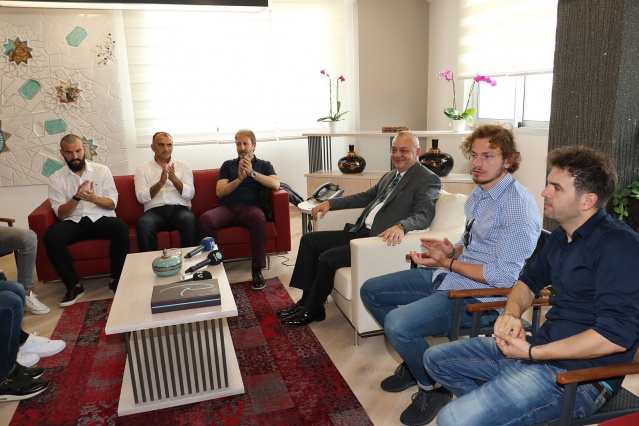 Spor Toto 2. Lig’de şampiyon olarak PTT 1. Lig’e çıkan Manisaspor’da, Teknik Direktör Taner Taşkın ve futbolcular Manisa Büyükşehir Belediye Başkanı Cengiz Ergün’ü ziyaret etti.