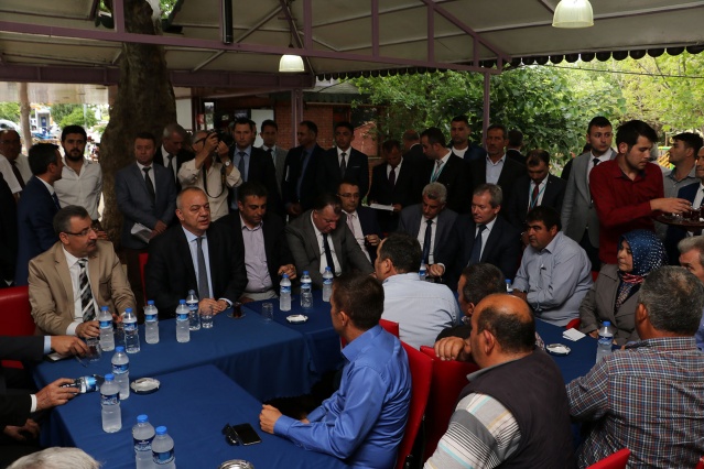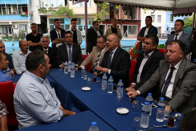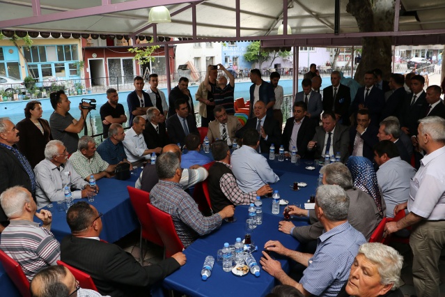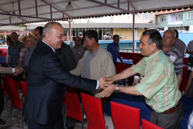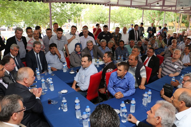 Manisa Büyükşehir Belediye Başkanı Cengiz Ergün, açılış ve temel atma programları için gittiği Soma’da mahalle muhtarlarıyla bir araya geldi. Muhtarlara asfalt, su deposu, düğün salonu ve ulaşım konusunda ilçeye yapılacak hizmetler hakkında müjdeler veren Başkan Ergün, muhtarların taleplerini de dinleme fırsatı buldu.