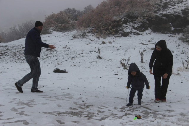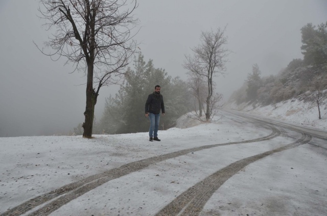 Manisa'da, geçen yıl şubat ayında karla buluşan Spil Dağı, bu yıl kasım ayının son gününde beyaza büründü.