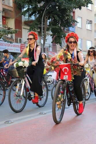 Manisa’da 3. Süslü Kadınlar Bisiklet Turu etkiniği düzenlendi. Süslü kadınlar bisikletleriyle Cumhuriyet Meydanı’nda buluşarak kortej eşliğinde şehir turu atıp, Manisa'nın yeni nesil buluşma noktası Sümerpark'a kadar pedal çevirdi. Kadından Sümerpark'ta müzik eşliğinde doyasıya eğlendiler.