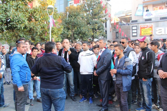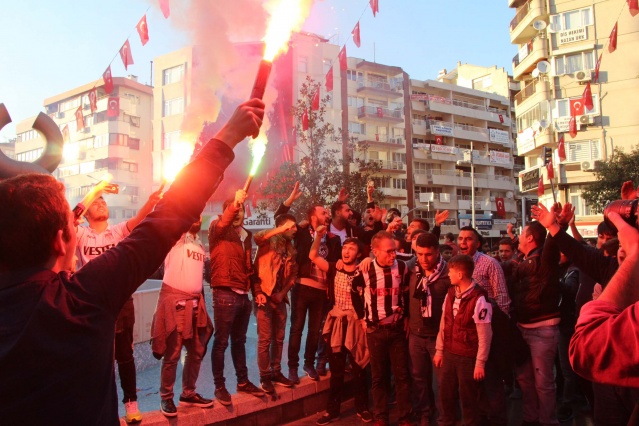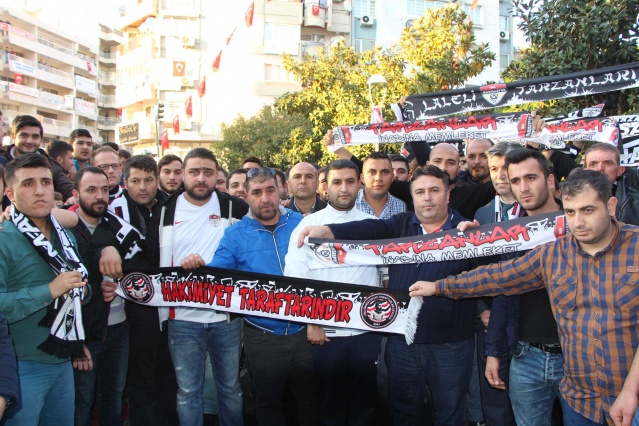 Açıklamaların ardından 500 kişilik taraftar grubu sloganlar atarak Manisaspor-Sivasspor maçının oynanacağı Manisa 19 Mayıs Stadı’na yürüdü.