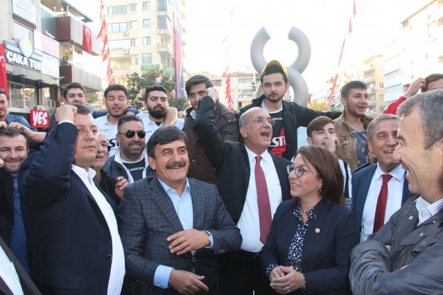 15 Temmuz Demokrasi Meydanı’nda toplanan taraftarların eylemine CHP Genel başkan Yardımcısı Tekin Bingöl, CHP Grup Başkanvekili Özgür Özel, CHP Manisa Milletvekili Tur Yıldız Biçer, CHP İl Başkanı Halil Tokul’de katılarak destek verdi. CHP Genel Başkan Yardımcısı Bingöl, taraftarlarla birlikte ‘Siyah-Beyaz, En Büyük Manisaspor’ sloganları attı. CHP’li Bingöl daha sonra partililer ile birlikte eylemden ayrıldı.