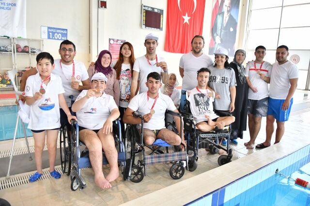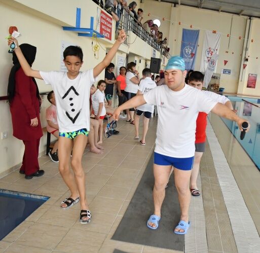 Günler öncesinden Gençlik Hizmetleri ve Spor İl Müdürü Yunus Öztürk’ün girişimleri ile harekete geçen Gençlik Merkezleri Müdürü Özcan Özen ve Yunusemre Gençlik Hizmetleri ve Spor İlçe Müdürü Vekili Levent Tokay ve Manisa Bedensel Engelliler Spor İl Temsilcisi Ahmet Ünsal ile sporcuların aileleri Atatürk yüzme kompleksinde gerçekleştirilen ‘Engelliler ve özel sporcular yüzme şenliğine’ katıldı.