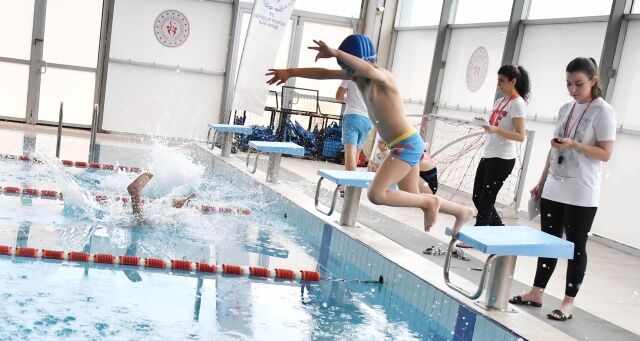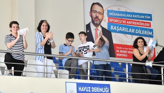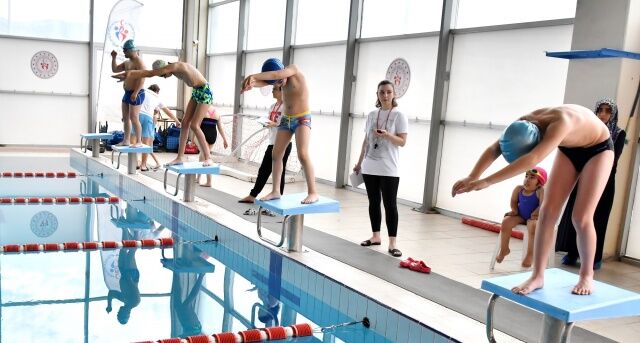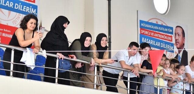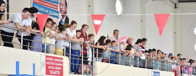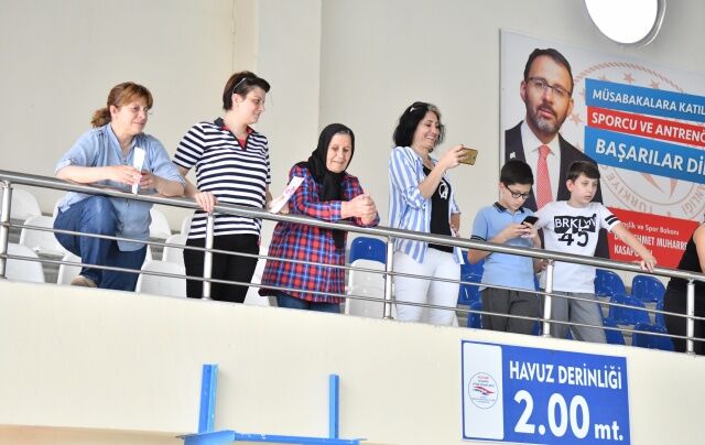 Havuza gelen sporcular yüzme antrenörleri Erman Tosun ve Nurettin Karanarlık ve Elif Gökarslan önderliğinde planlanan yarışlar öncesinde müzikler eşliğinde moral depoladılar. Çocuklarının bu durumuna ise velileri tribünlerden alkışlarla katkı sağladı.