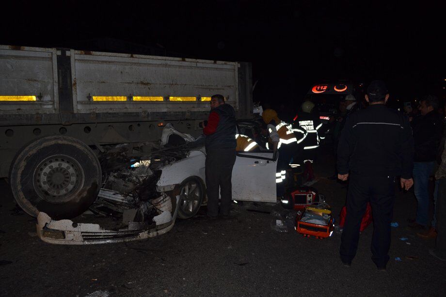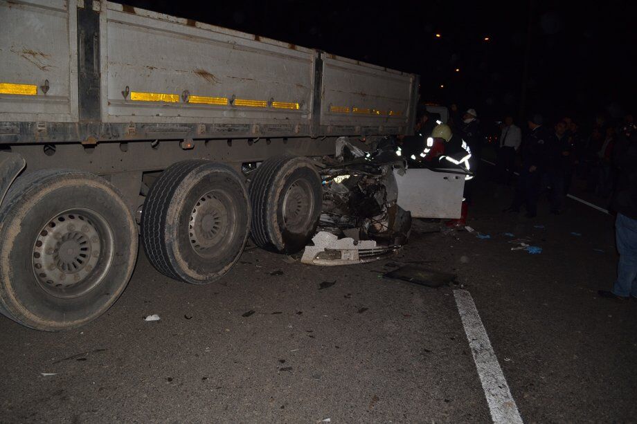 OTOMOBİL TIRIN ALTINA GİRDİ