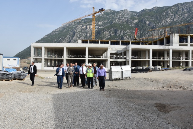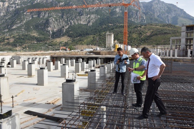Manisa Valisi Erdoğan Bektaş Şehzadeler ilçesinde yapımı devam eden 558 yataklı hastane inşaatında inceleme yaptı.
