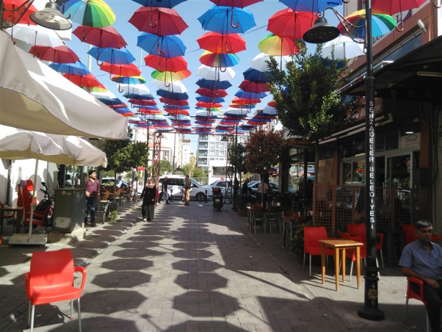 VATANDAŞLAR BEĞENDİ Sokakta yapılan yeni düzenlemeyle şimdiden büyük ilgi gören sokak, vatandaşların beğenisini kazanmayı başardı. Görenlerin neredeyse fotoğraf çektirmeden ayrılmadığı bir konseptle düzenlenen caddeni kısa sürede Manisalıların en uğrak yerleri arasında yer alması bekleniyor. Şemsiye asımının sürdüğü sokakta çalışmaların ise kısa sürede tamamlanması bekleniyor.