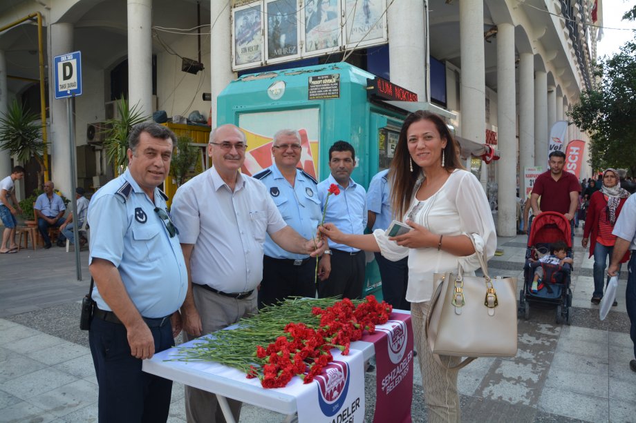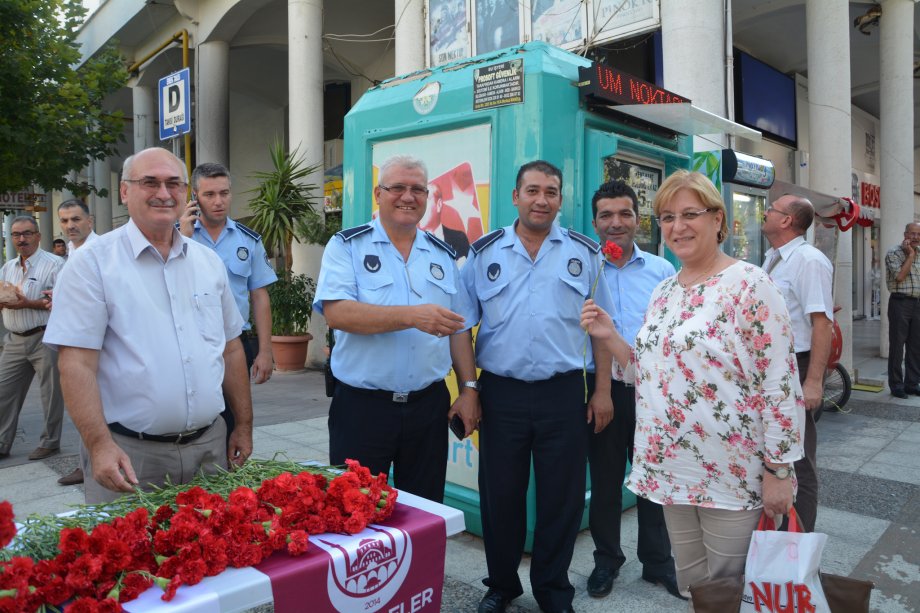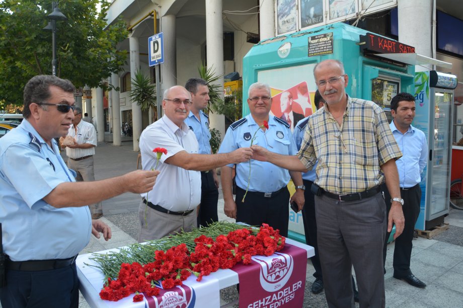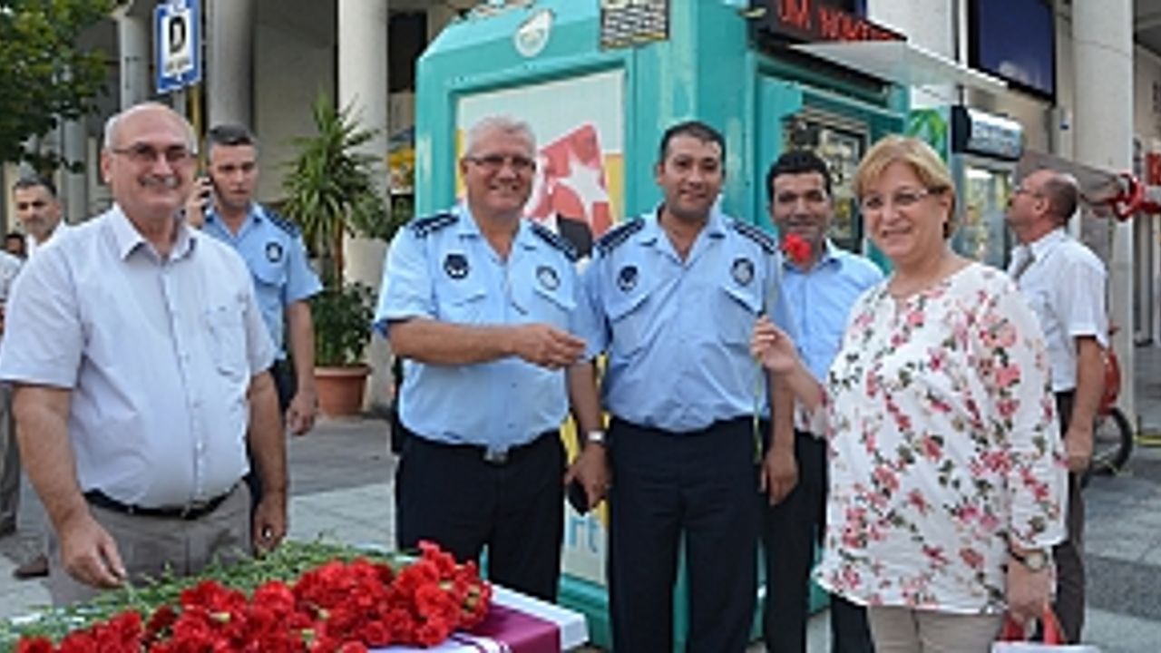 zabıta ekipleri vatandaşlara karanfil dağıttı