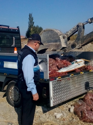 Manisa İl Emniyet Müdürlüğü ekiplerinin rutin kontrolleri esnasında durdurduğu bir kamyonetin içerisinden poşetlenmiş ve parçalanmış halde kırmızı et bulundu. Bunun üzerine Manisa Büyükşehir Belediyesi Zabıta Dairesi Başkanlığı ekiplerine haber verildi. Zabıta Dairesi Başkanlığı’na bağlı zabıta ekipleri, ele geçirilen 500 kilogramlık kırmızı etin muhteviyatı, faturası, irsaliyesi ve menşeinin belli olmadığını tespit etti. Tarım İl Müdürlüğü yetkilileri müşahitliğinde Manisa Büyükşehir Belediyesi Zabıta Dairesi Başkanlığı ekipleri tarafından ele geçirilen etler imha edildi.