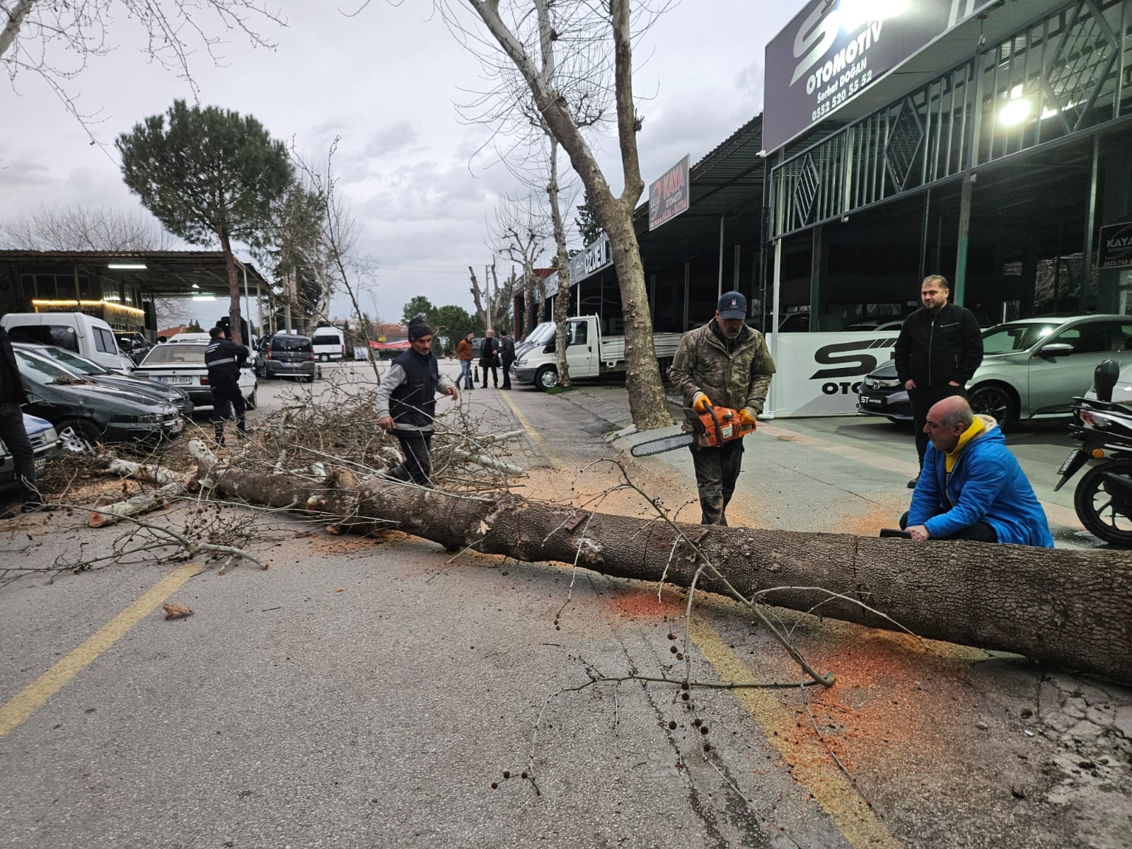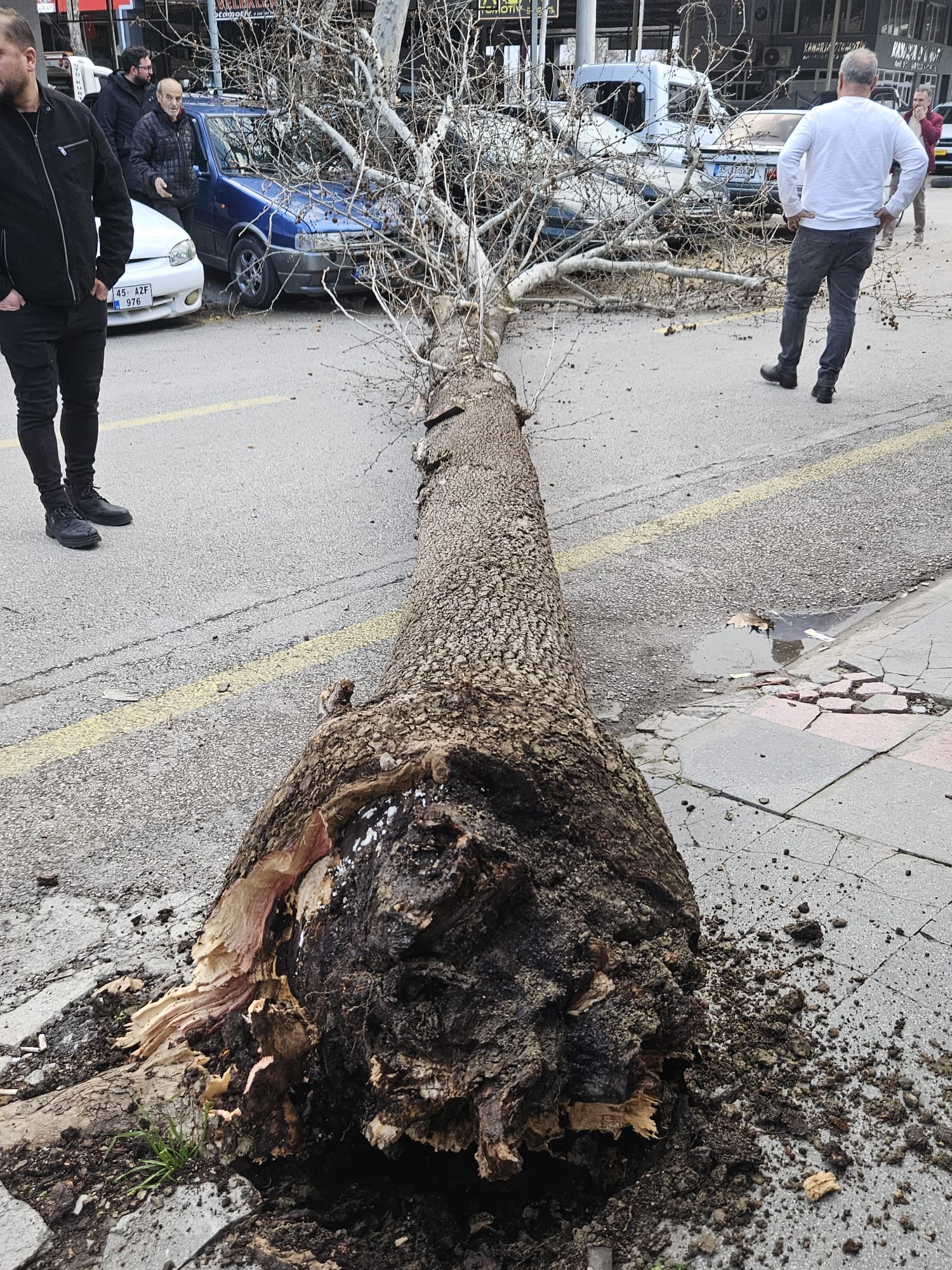 Manisa Galericiler Sitesi'nde çınar ağacı büyük bir gürültüyle yola devrildi. Rüzgarın da etkisiyle kökleri çürüyen ağaç araçların zarar görmesine neden oldu. Ağacın devrildiği sırada yolun boş olması olası bir faciayı önledi. Ağaç yolu kapattığı için site esnafı belediye yetkilerine durumu bildirdi.