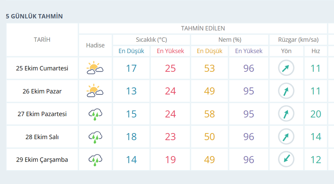 MANİSA İÇİN 5 GÜNLÜK HAVA TAHMİNİ