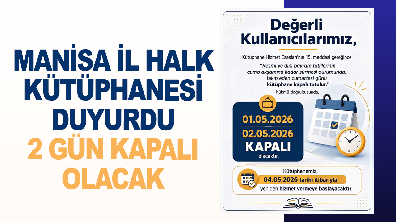 Bu kapsamda, 1 Mayıs 2026 ve 2 Mayıs 2026 tarihlerinde kütüphanenin kapalı olacağı belirtildi.