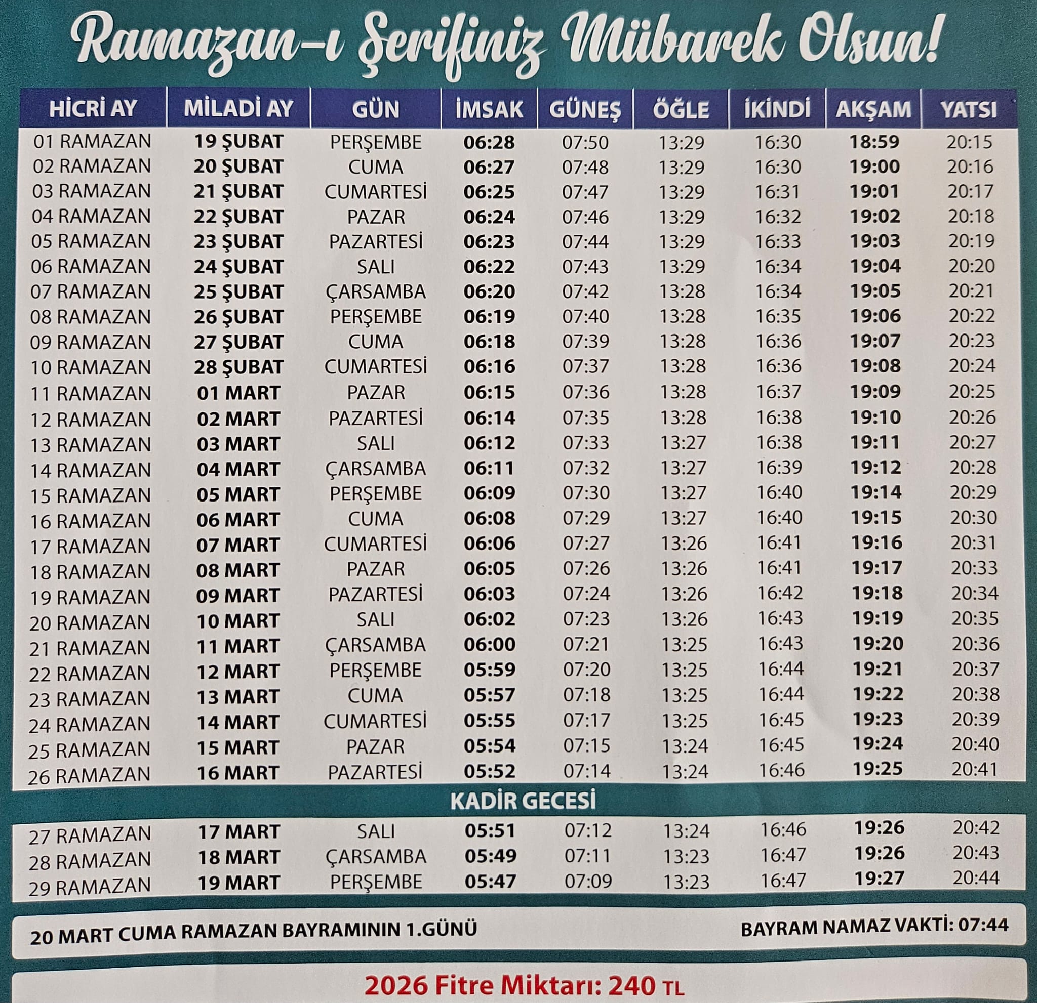 19 Şubat 2026 tarihinde başlayacak olan Ramazan ayı, 19 Mart 2026 Perşembe günü sona erecek.